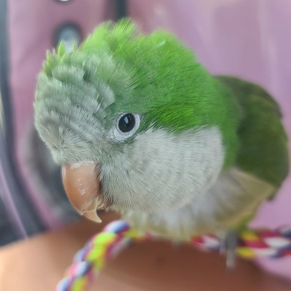 Verde loves to show off by flipping upside down and eagerly welcomes scratches when he’s winding down from all the excitement. Don’t let his mischievous side fool you—deep down, this little feathered friend is an absolute sweetheart who just wants to share his joy with everyone he meets. We’re thrilled to have Verde as part of our family, and we know you’ll adore him, too!